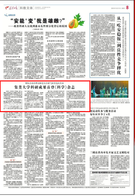 【福建日报】亚洲中文精品乱码科研成果首登《科学》杂志