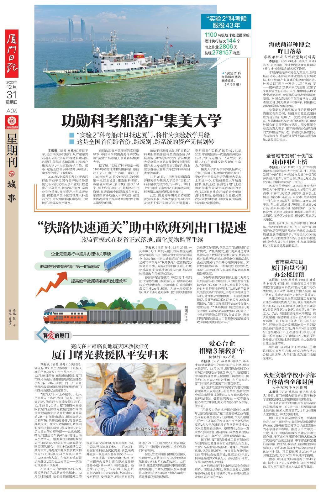 ■“实验2”科考船昨日抵达厦门,将作为实验教学用船 ■这是全国首例跨省份、跨级别、跨系统的资产无偿划转