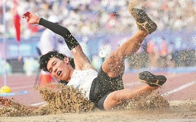■朱德宁在跳远比赛中。